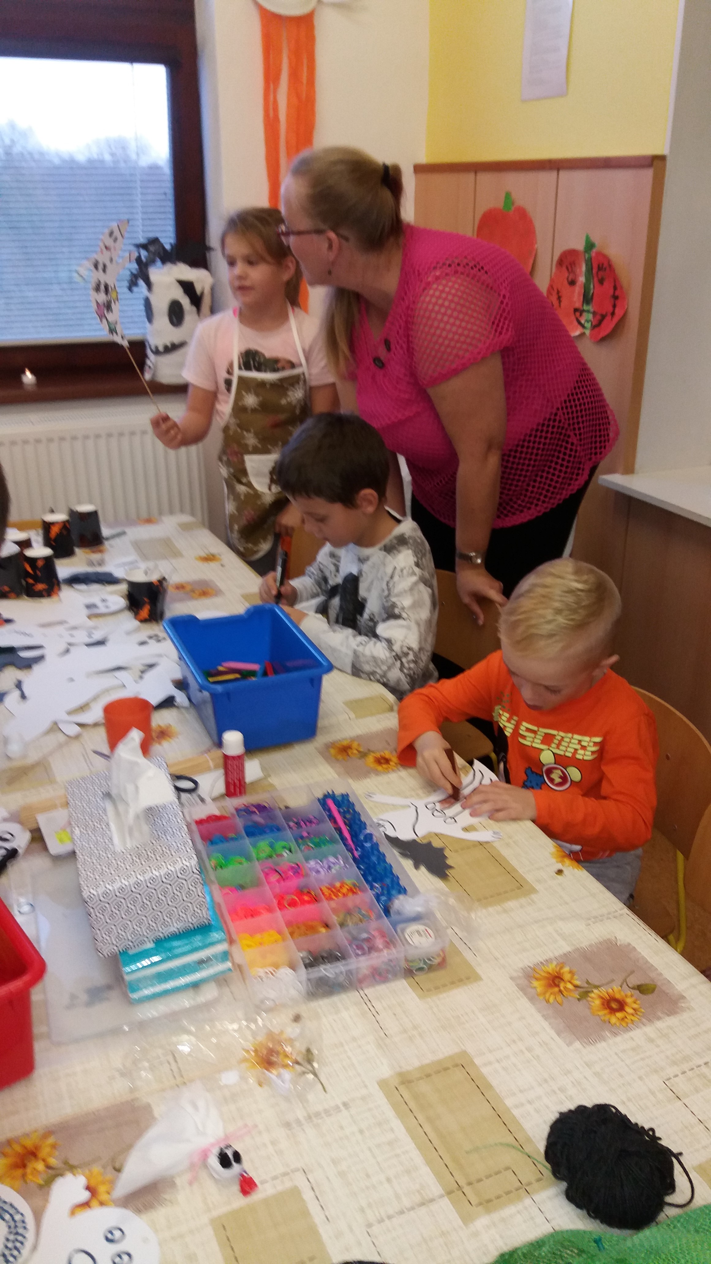 Děkujeme dětičkám a rodičům za krásné a tvořivé odpoledne, které jsme si moc užili. Za mimořádné účasti byly vytvořeny originální a krásné dýně a létající duchové. Vyráběly se kouzelné hůlky a sely začarovaná semínka. Práce to byla vyčerpávající, proto občerstvení, které děti z ŠD připravily, přišlo vhod. Těšíme se na příště!!!