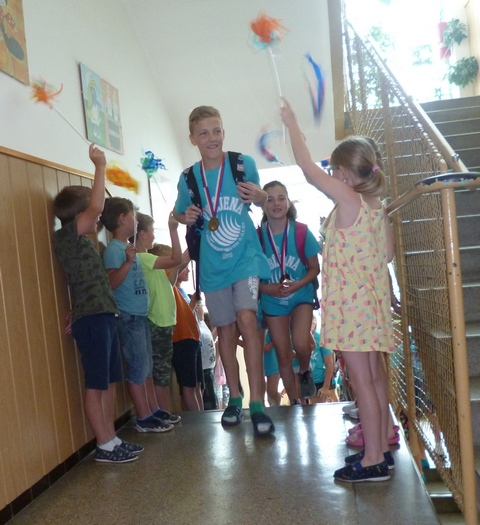 Ten potlesk, konfety, které nás zasypávaly, zvuk píšťalek, doprovázený překrásnou písní „We are the champions“, plakát vyrobený našimi spolužáky, to vše ještě zvýšilo naši již tak velikou radost z úspěchu.