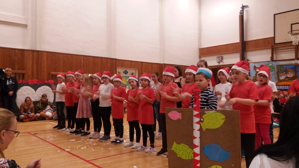 V úterý 17. 12. jsme uspořádali besídku pro rodiče, prarodiče a vůbec všechny přátele naší školy. Diváků přišlo mnoho, omlouváme se těm, na které už nezbyla místa na sezení. Nervozitu a napětí účinkujících střídaly hřejivé úsměvy a potlesk. Věříme, že všichni odcházeli domů vánočně naladěni.