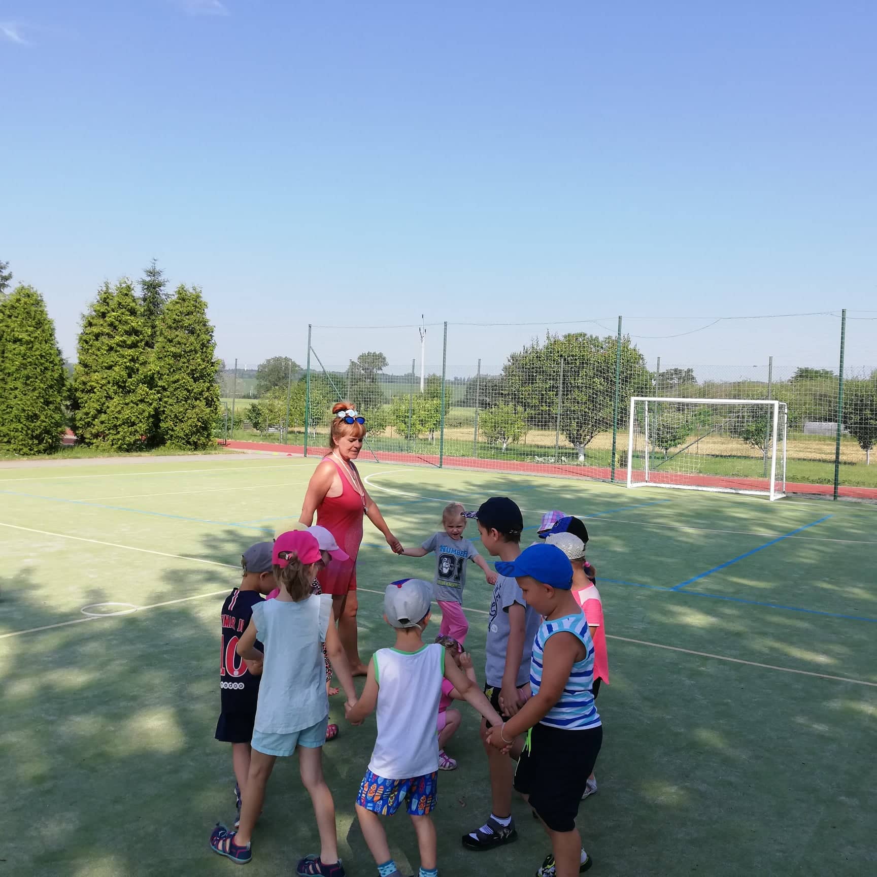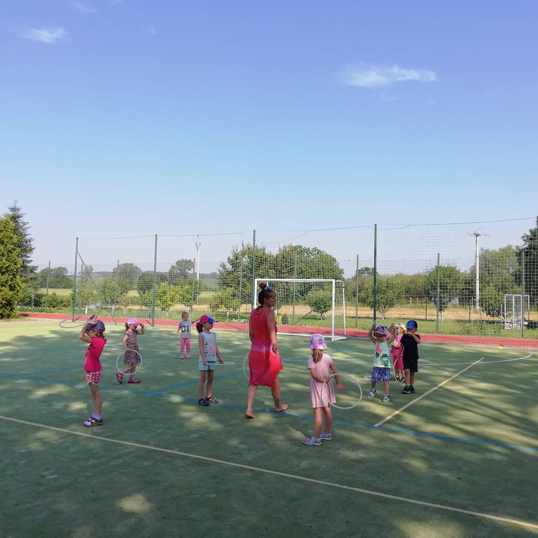 Krásné počasí nás vytáhlo na ranní rozcvičku ven na hřiště. Na závěr roku jsme si také všichni společně zvesela zazpívali.