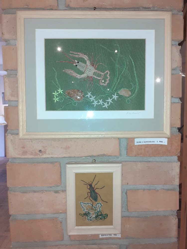 Přišli jsme se podívat na výstavu B. Křižkové a A. Lakomé - paličkování abroušené sklo....
